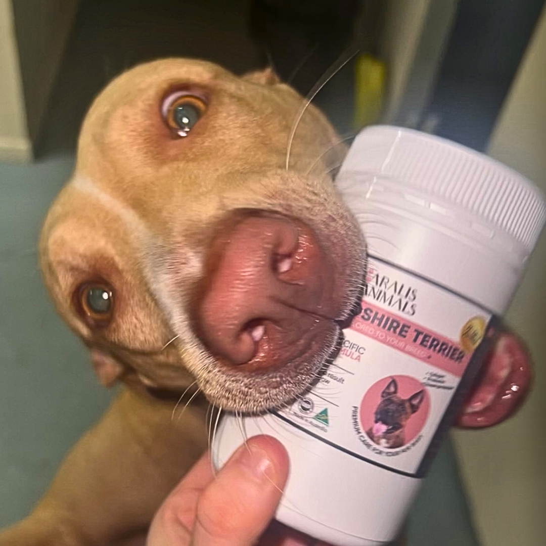 Aralis Animals Breed-Specific supplements come in a powder form which makes it easy to add to your pooch's meal. Simply sprinkle the recommended amount onto food daily.